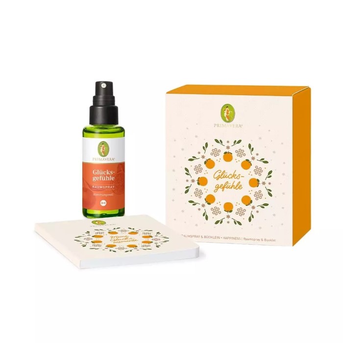 Glücksgefühle - Geschenkset mit stimmungshebendem Raumspray und einem Notizbüchlein zum Sammeln von Glücksmomenten