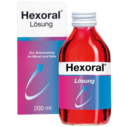 Wirkstoff: Hexetidin. Anwendungsgebiete: Zur vorübergehenden Keimzahlverminderung im Mund- und Rachenraum und zur vorübergehenden unterstützenden Behandlung bei bakteriell bedingten Entzündungen des Zahnfleisches (ergänzend zur mechanischen Reinigung) und der Mundschleimhaut sowie nach parodontal-chirurgischen Eingriffen bei Kindern ab 2 Jahren, Jugendlichen und Erwachsenen. Warnhinweise: Enthält Azorubin, Eucalyptusöl, Levomenthol und Alkohol (Ethanol).