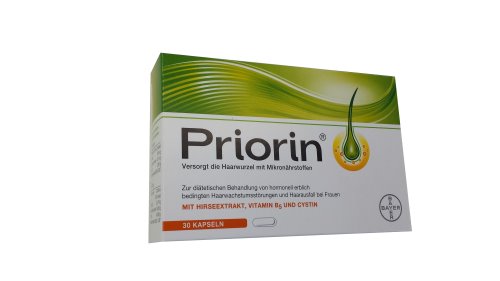 Die PRIORIN® Kapseln dienen der diätetischen Behandlung von hormonell erblich bedingten Haarwachstumsstörungen und Haarausfall bei Frauen (androgenetische Alopezie). Sie versorgen die Haarwurzel mit wichtigen Mikronährstoffen und unterstützt ihren Zellstoffwechsel. Die PRIORIN® Kapseln wirken auf der Basis natürlicher Inhaltsstoffe der Hirse in Kombination mit dem essentiellen Vitamin B5 (Pantothensäure) und dem Eiweißbaustein L-Cystin.