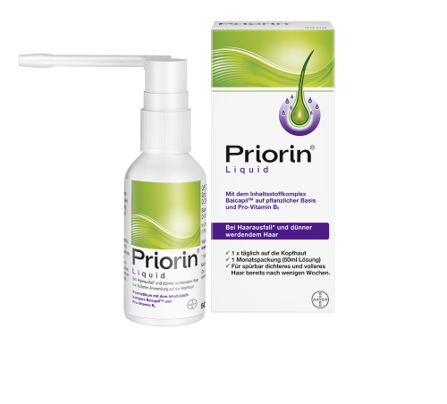 NEU: Priorin® Liquid. Die Lösung bei Haarausfall*. Mit dem Inhaltsstoffkomplex Baicapil™ auf pflanzlicher Basis und pro Vitamin B5 – nur 1x täglich auf die Kopfhaut auftragen.Es unterstützt den Haarwachstumszyklus und trägt so zu einem natürlichen Haarwachstum bei. Diese Effekte zeigt auch eine kosmetische Studie**: Bei täglicher Anwendung sorgt Priorin® Liquid für dichteres und volleres Haar bereits nach wenigen Wochen und reduziert Haarausfall* nach 12 Wochen. *nicht krankheitsbedingter Haarausfall **In-vitro-Untersuchung