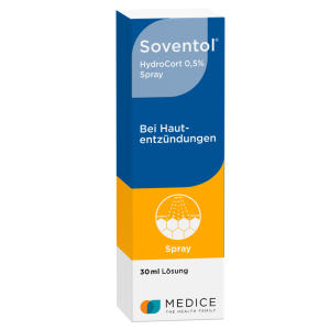 Das Pumpspray mit Hydrocortison wirkt entzündungslindernd und juckreizstillend und sorgt zudem für eine sofortige, angenehme Kühlung. Darüber hinaus punktet Soventol® HydroCort 0,5% Spray durch seine besondere Darreichungsform: Das Spray lässt sich einfach und ohne Berührung auftragen. Ein besonderer Vorteil, wenn berührungsempfindliche oder schwer erreichbare Hautpartien behandelt werden sollen. Da das Spray weder fettet noch verklebt, ist es auch für behaarte Stellen ideal geeignet.